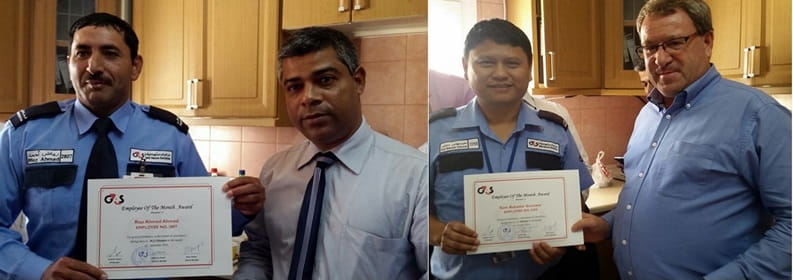 Riaz Ahmed, Security Officer at one of the Primary Schools in Bahrain was awarded as the “Employee of the Month” for September, whilst Som Bahadur, ATM Crew Leader of one of major Banks in Bahrain was awarded as “Employee of the Month” for October 2014, both due to their outstanding performance which were appreciated by our clients. Mr. Atanu Sanyal, General Manager of G4S Bahrain and Mr. Dave Rollo, Regional Technical Design Architect of G4S UAE presented the certificates and cash gifts to the Security Officers during the small ceremony which was held on 12th Nov 2014 at G4S Bahrain office.