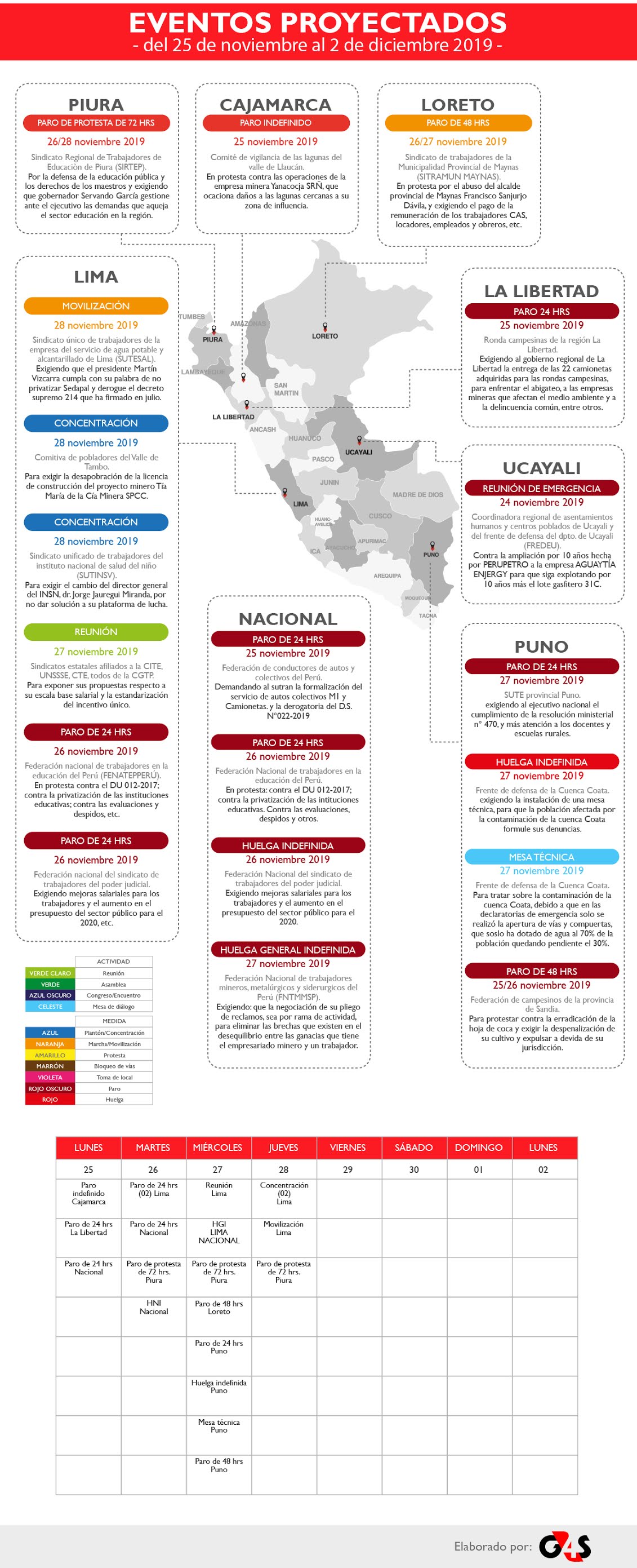 Eventos Proyectados del 25 de noviembre al 2 de diciembre de 2019