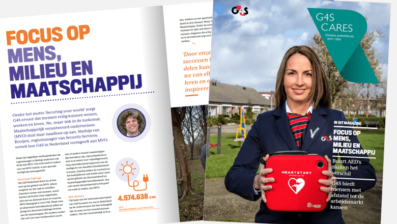 Net als vorig jaar hebben we voor ons sociaal jaarverslag verschillende verhalen gebundeld in de vorm van een magazine. Deze verhalen tonen de maatschappelijke betrokkenheid van G4S en haar medewerkers. Zo kun je bijvoorbeeld lezen hoe medewerkers zich inzetten voor vrijwilligerswerk en het steunen van lokale goede doelen. Hoe we ons MVO beleid aanpakken en welke duurzame en milieubesparende initiatieven we afgelopen jaar hebben genomen.