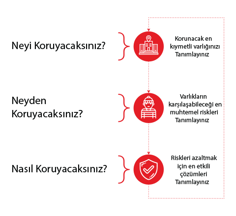 Bir işletme için gerekli güvenlik çözümlerini sunabilmek şu etkin soruları yanıtlayarak mümkündür: